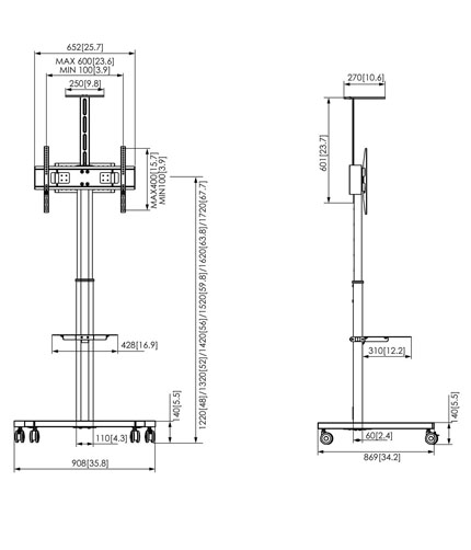 settings. Suitable for screens with a maximum VESA of 600 x 400 mm and a load