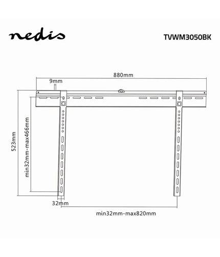 37-70 " | Maximum supported screen weight: 65 kg | Minimum wall distance: 9 mm | Steel | Black